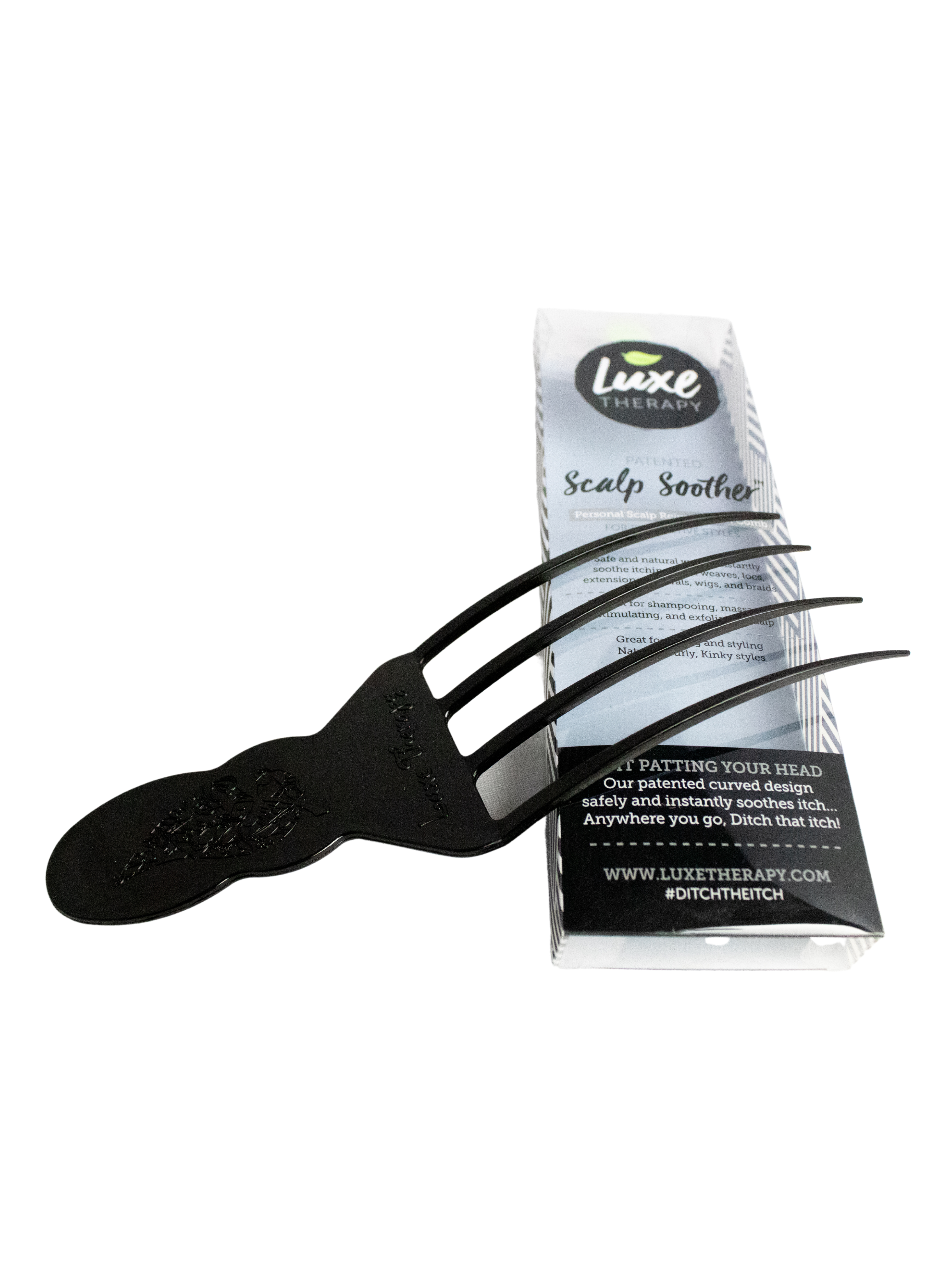 The Scalp Soother soothes the infamous itching associated with hair extensions, hair weaves, locs, twists and wigs. The flexible, yet sturdy design allows the teeth to spread out over the scalp in order to conform to the shape of your head without causing any abrasions to your scalp.