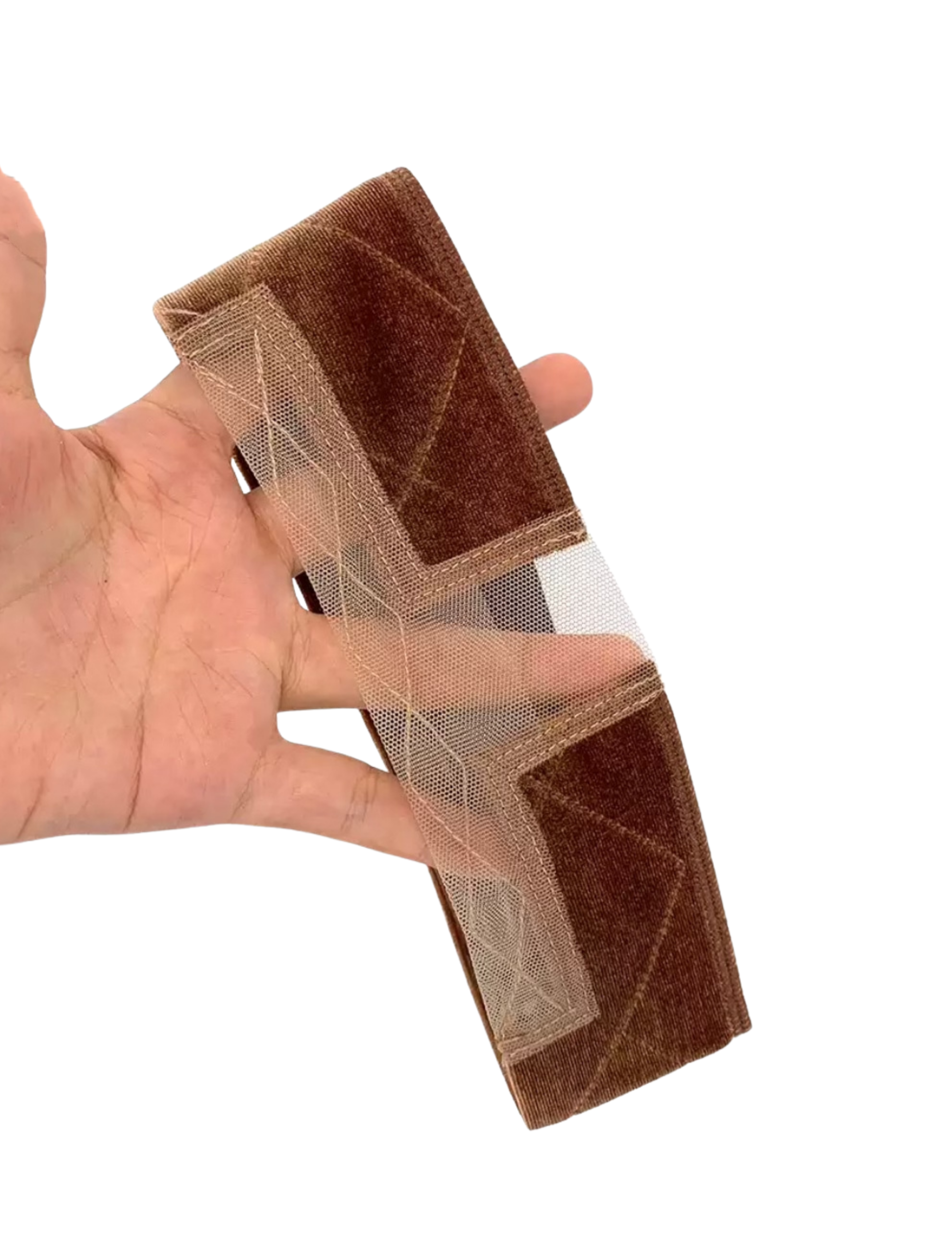 Secure your wig or custom unit with this comfortable, adjustable, velvet and lace headband. Prevent it from sliding or falling off without sticky glue or tight elastic bands.